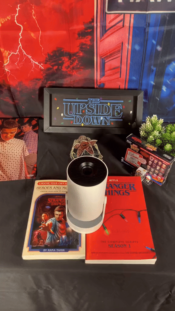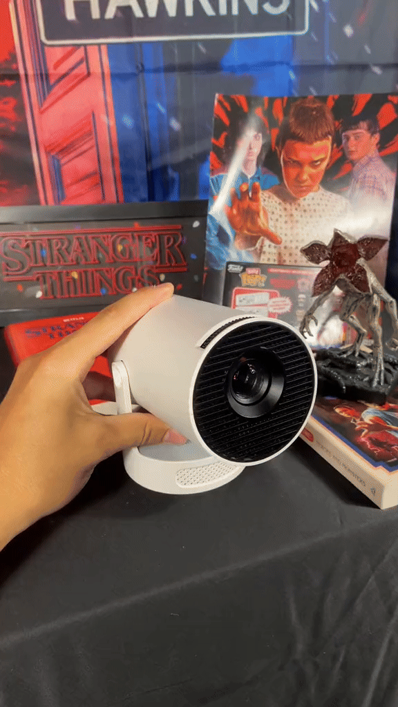 The Strange Projections™ Projector floods your room with cinematic colors, deep shadows, and glowing ambience — making every movie night feel straight out of Stranger Things.